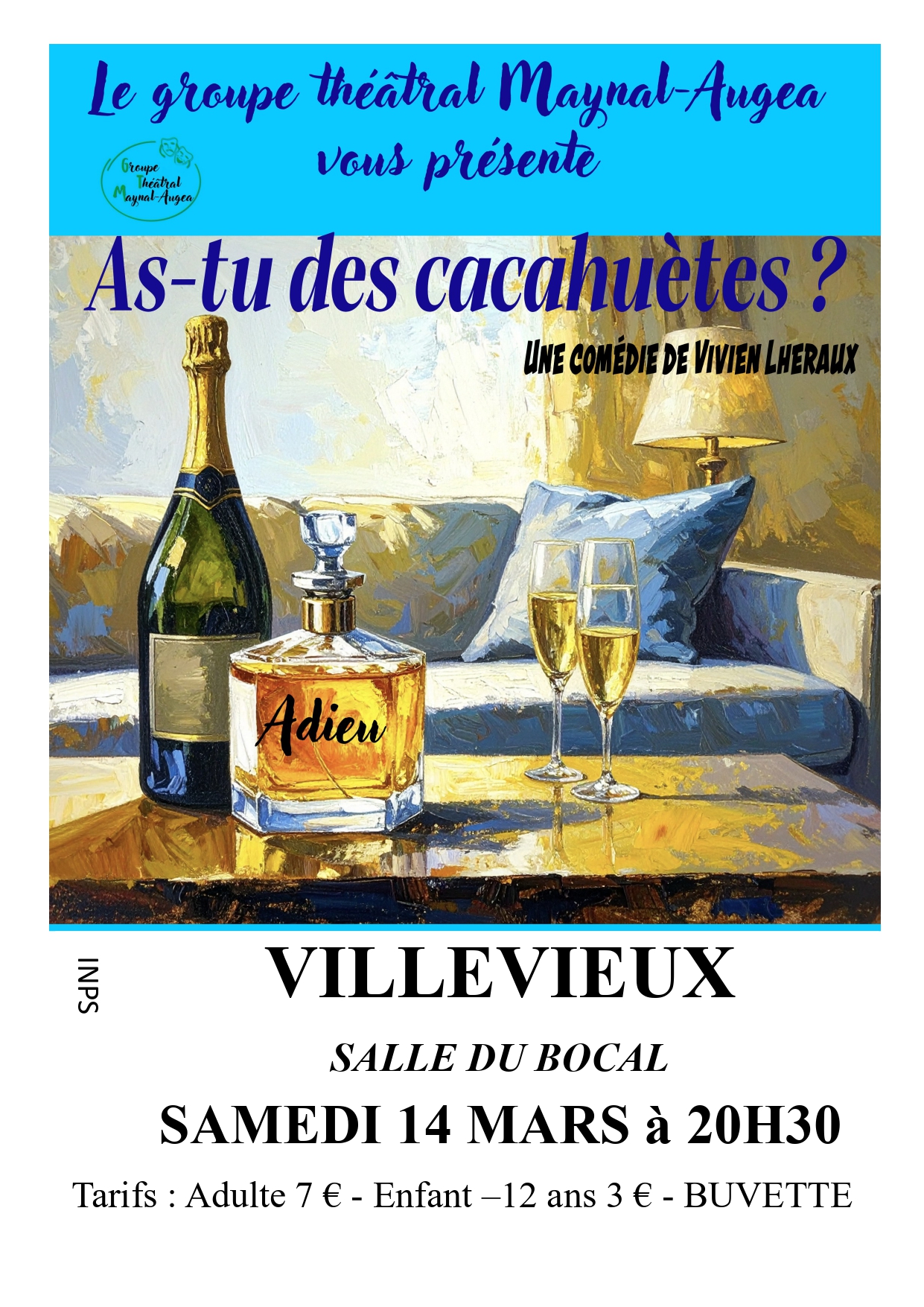 Soirée THÉÂTRE : "As-tu des cacahuètes"de Vivien Lheraux (Le groupe théâtral de Maynal - Augea)